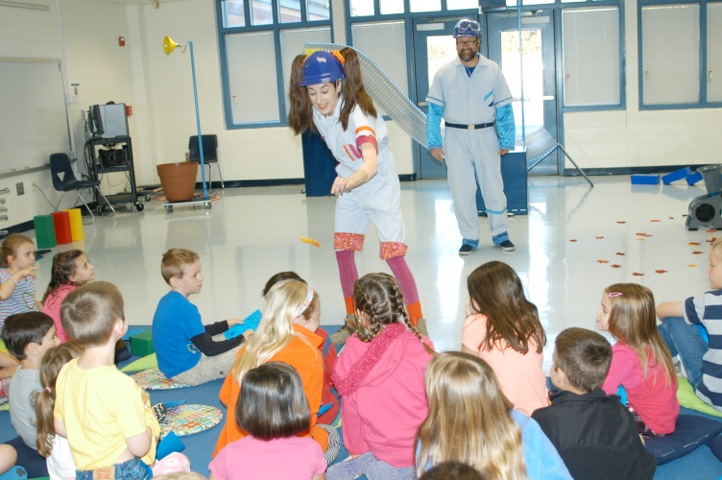 To prepare for it, the third-grade students took on the job of dramaturg to research and define the elements of the show, and to educate the kindergartners, the main audience, about the show’s content. “Roob and Noob” is about two overly curious scientists who love discovering something new. It combines science and the arts to create an interactive adventure where the scientists build simple machines that help them explore each of the four seasons.