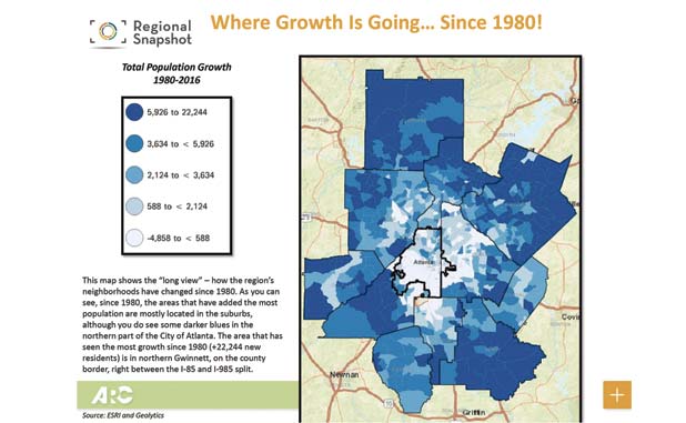 “As always, more jobs means more people,” said Mike Carnathan, manager of ARC’s Research and Analytics Division. “Newcomers are increasingly attracted to our region as our economy picks up steam, post-recession.”