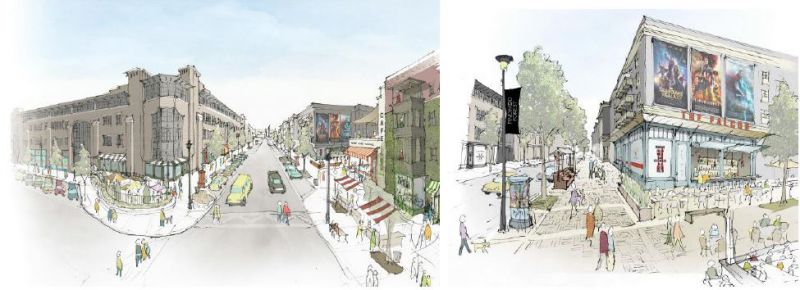 Streetscape views of portions of the planned Village Square area at Pinewood Forest in Fayetteville. Renderings/Nequette Architecture.