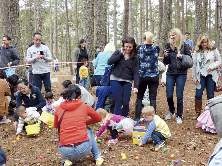It may look like pandemonium, but it’s really the annual Easter Egg Hunt in Peachtree City last weekend, sponsored by the Optimist Club of Peachtree City and the Peachtree City Fire Department. Unlike other age groups at the egg hunt, parents of the youngest egg hunters, age 2, can assist during the rush for the colored eggs. Photo/Ben Nelms.