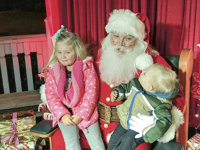 Hundreds braved brisk temperatures to attend the Fayetteville Christmas Tree lighting ceremony Dec. 5 at Heritage Park in downtown Fayetteville. The 26th annual ceremony had been rained out Dec. 1 due to the weather, but was rescheduled. Above and below are photos by Ben Nelms at the event, which also was broadcast live on the Facebook pages of The Citizen, Fayette Woman, the City of Fayetteville and MainStreet Fayetteville. Those videos are still viewable on Facebook. Santa Claus heard from dozens of youngsters whose line snaked around the Lane Brown Gazebo. The tree lighting ceremony included live sounds of the season, including a rendition of “O Holy Night” by local artist Kim Stanley. One large petitioner on Santa’s knee (above) was Fayetteville City Councilman Harlan Shirley.