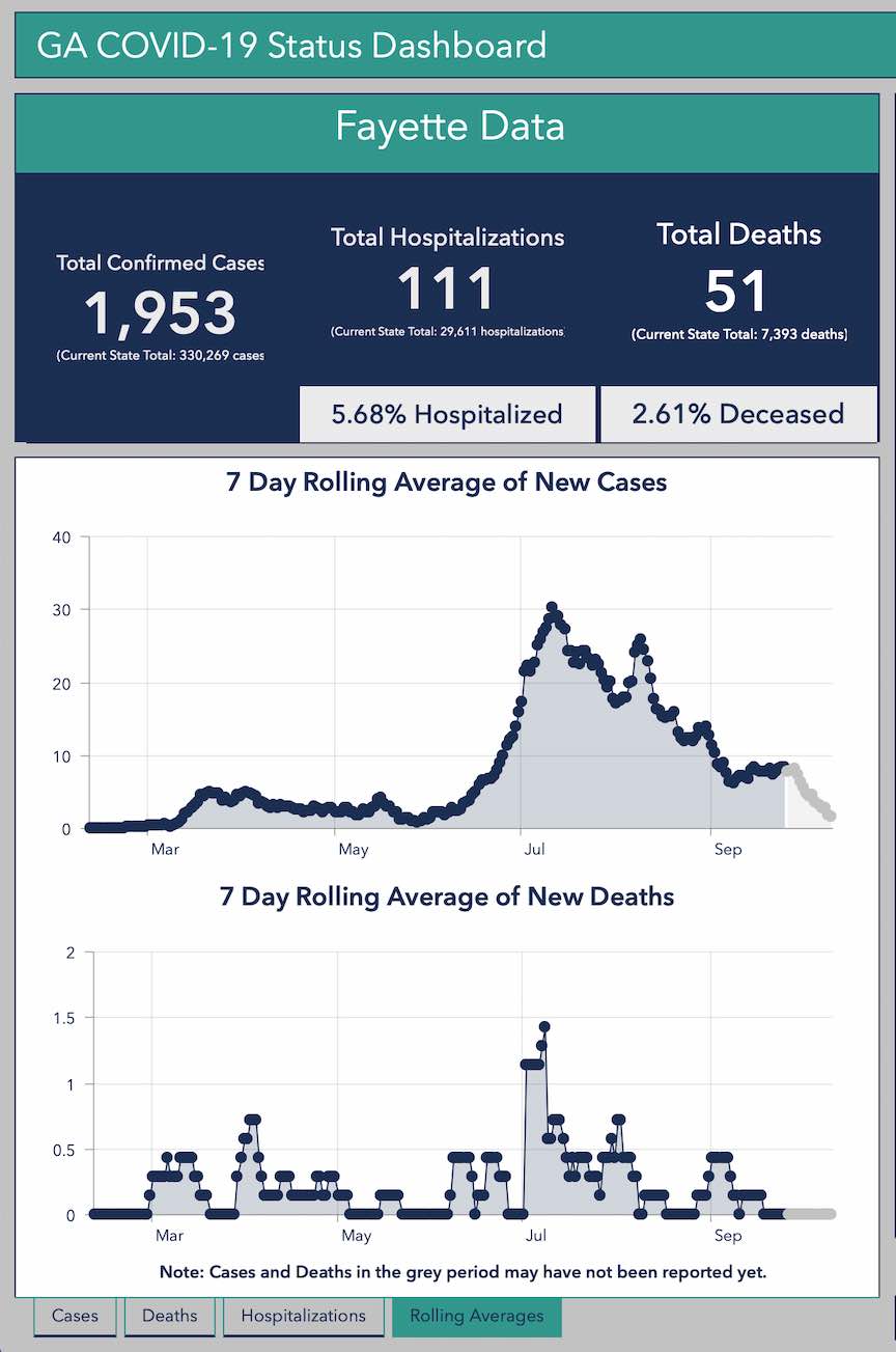 Information below represents Fayette County-level data from the Georgia Covid-19 Data Hub.