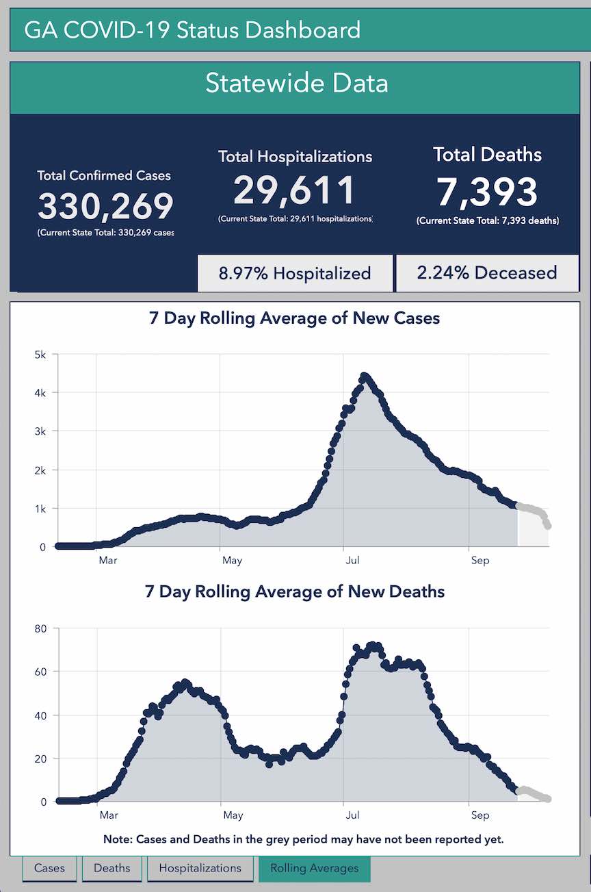 Here’s the Covid-19 pandemic report from the Georgia Department of Public Health as of 2:50 p.m., Oct. 10: