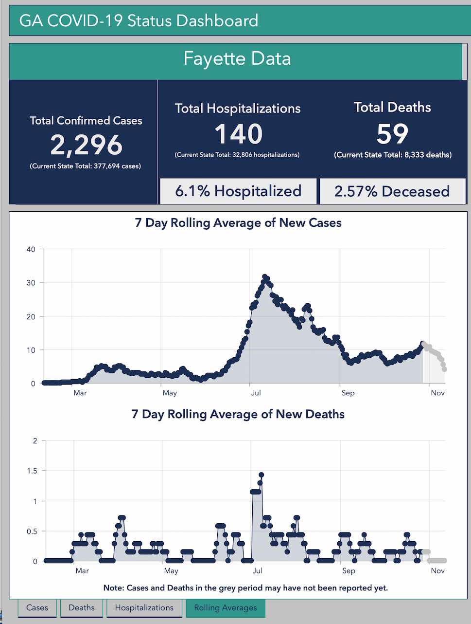 Information below represents Fayette County-level data from the Georgia Covid-19 Data Hub.