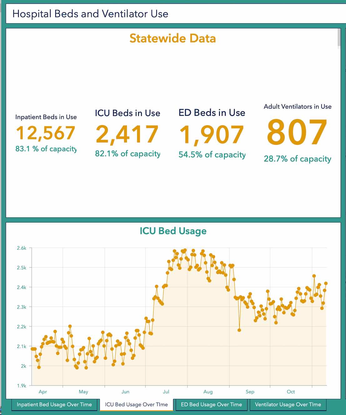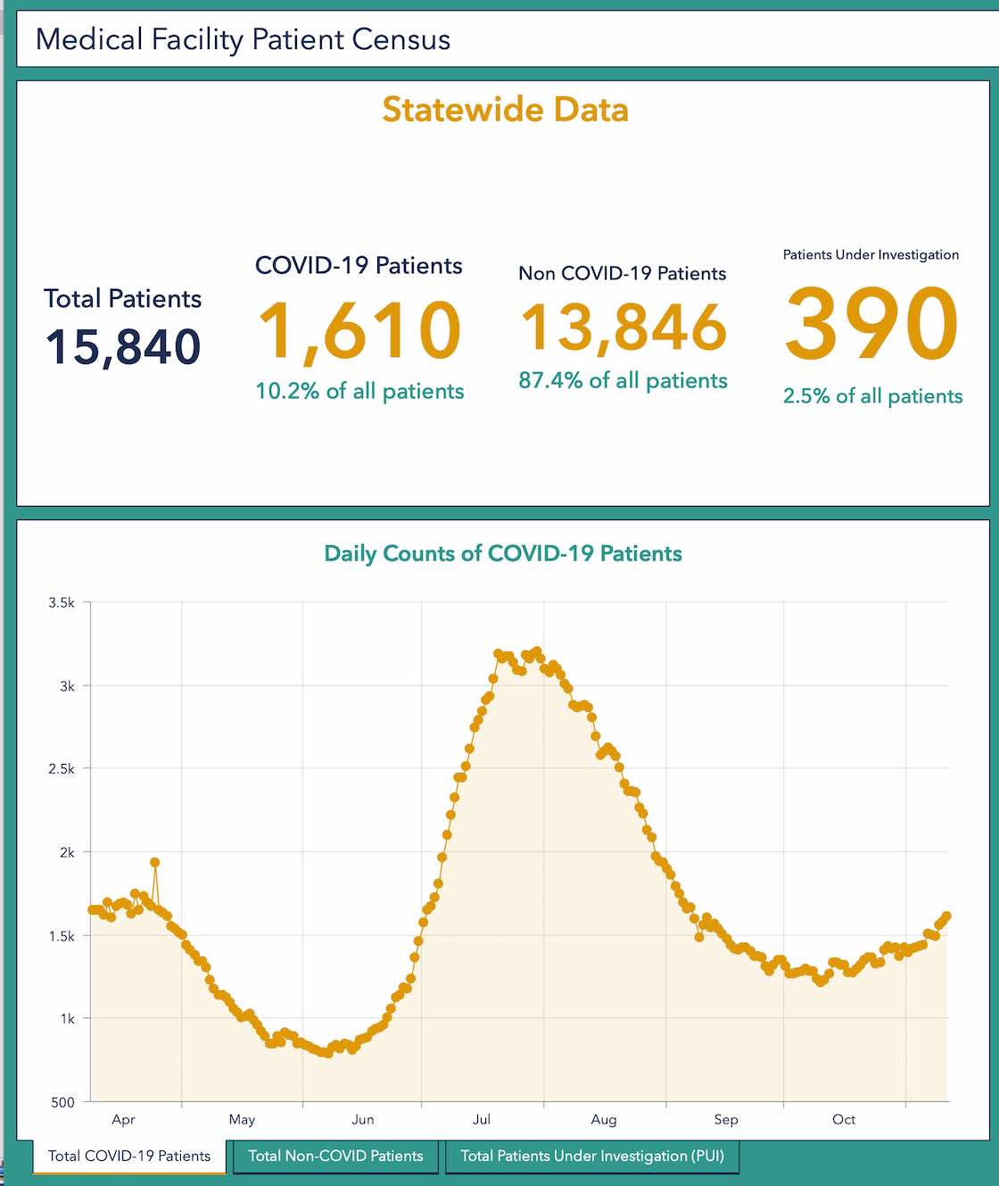 • Oct. 21 — 135 newly hospitalized patients; new statewide ICU admissions are 33.