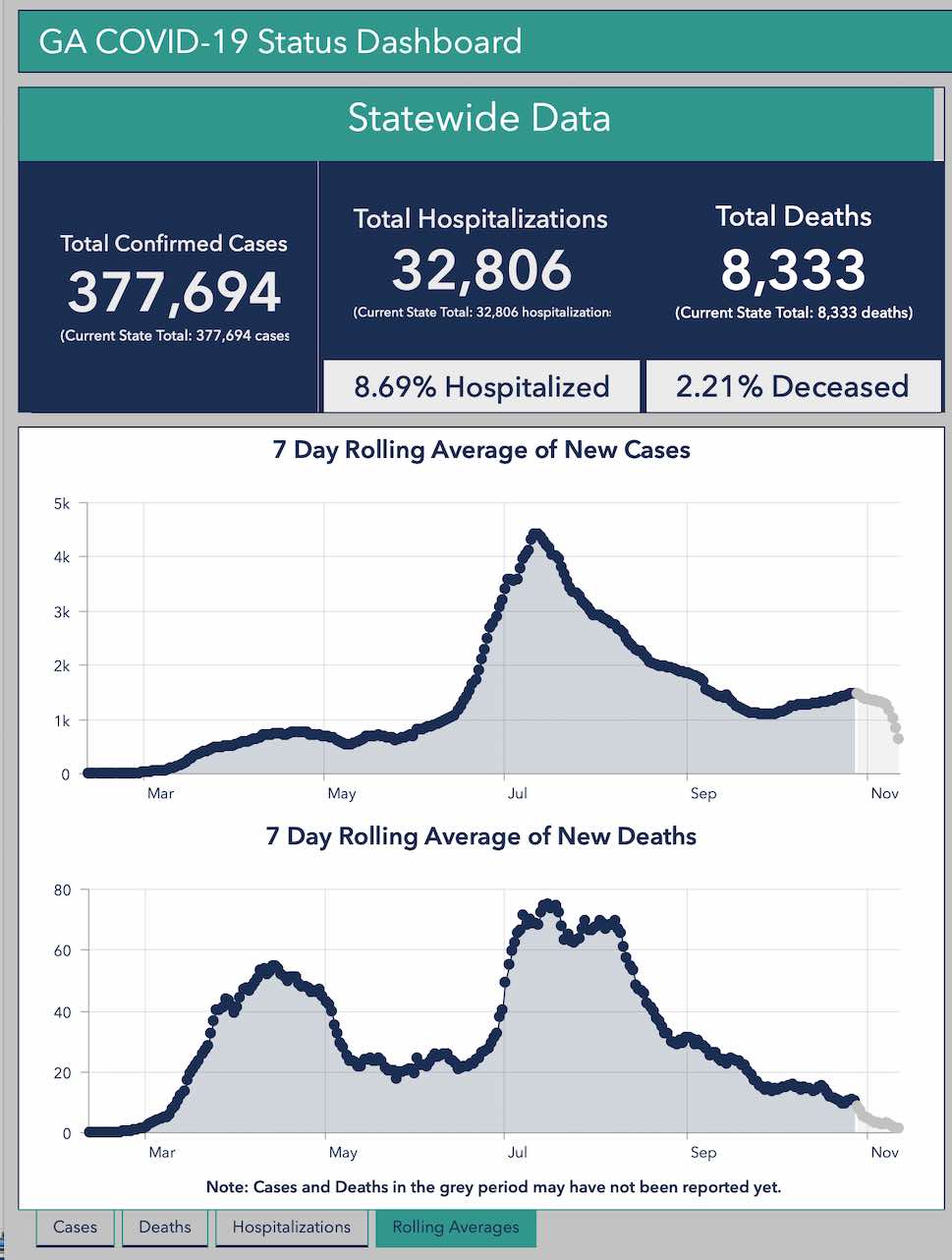 Here’s the Covid-19 pandemic report from the Georgia Department of Public Health as of 2:50 p.m., Nov. 11: