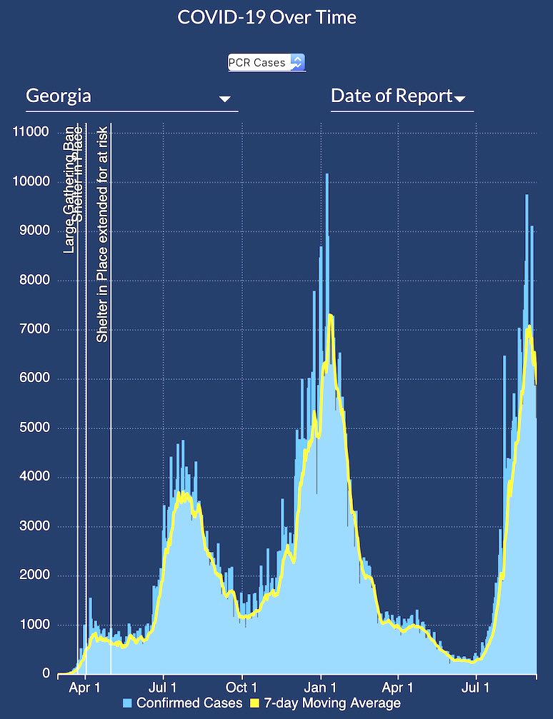 The late summer surge of Covid-19 shows signs of having peaked, and case numbers continue to decline across both Georgia and Fayette County, according to data from the Georgia Department of Public Health Sept. 9.