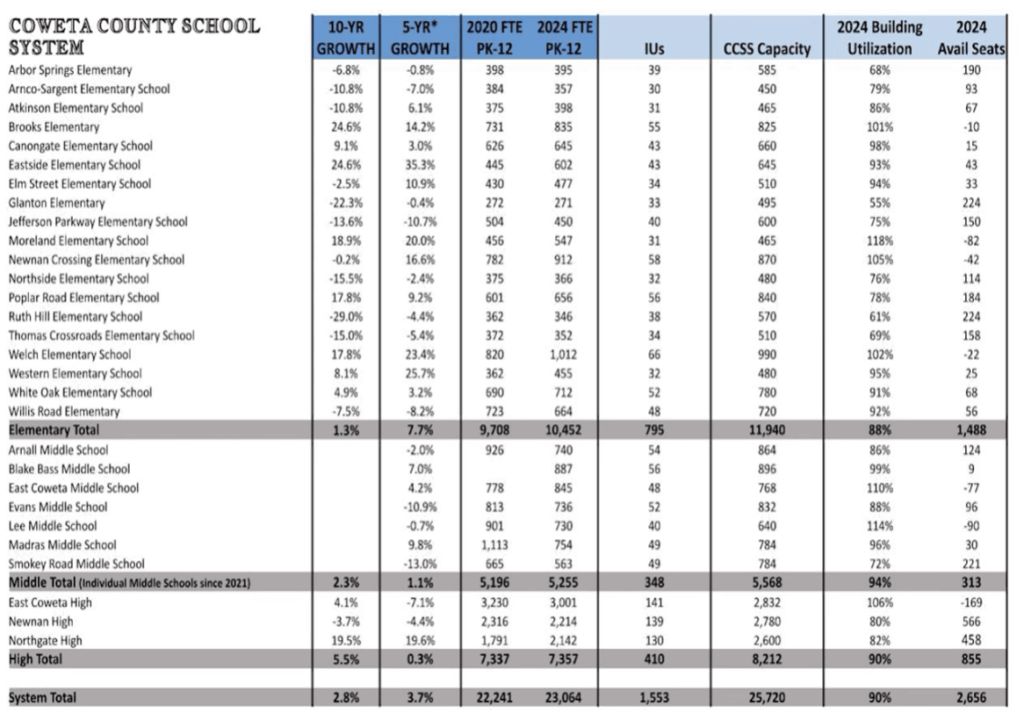 At the recent Coweta County School Board (CCSS) meeting, Mr. James Wilson Founder and CEO of EdPlanners presented an analysis of expected future growth in Coweta County. https://www.youtube.com/watch?v=ZmmJbh1_4rY