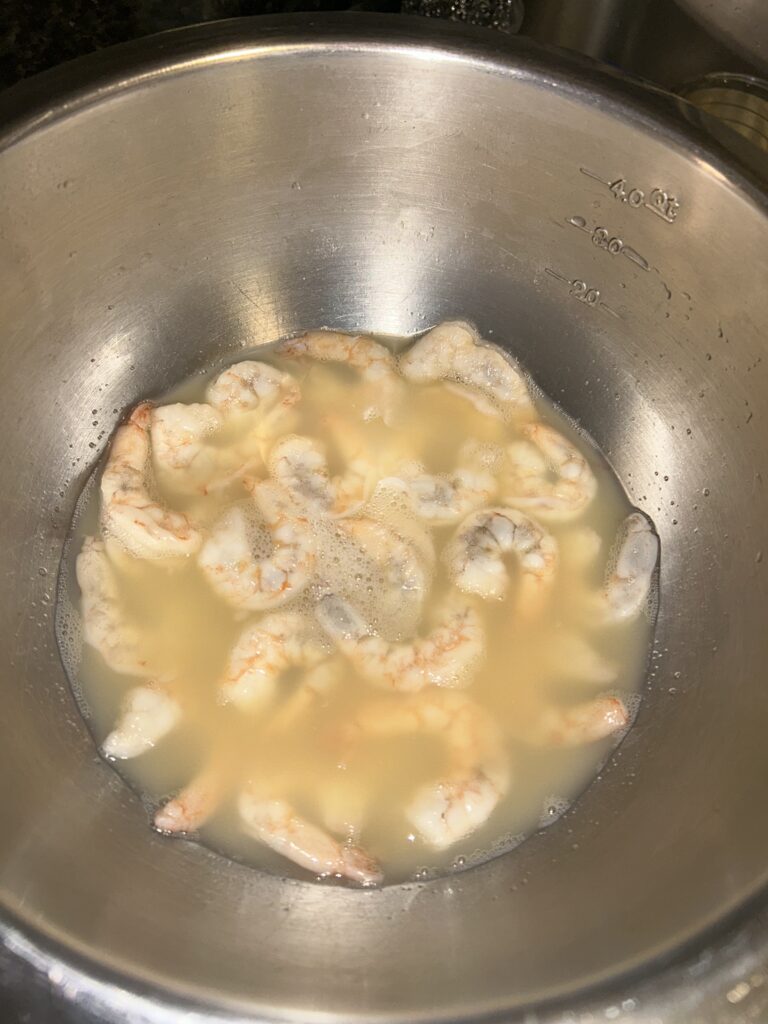 4. Let sit 4–6 hours (or overnight) until shrimp turns opaque and firm.
