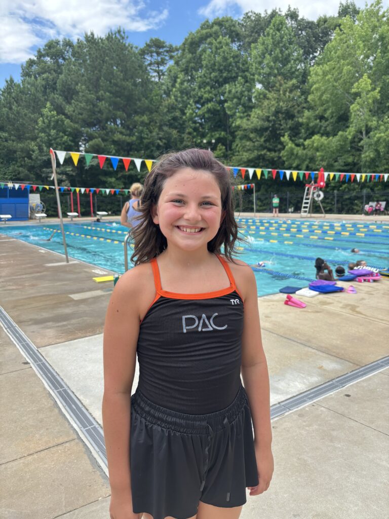 Emerson is an upcoming 6th grader who is always making new friends on the team. Her positive spirit and hard work have led her to achieve 5 best times so far in the 2025 long course season. ~Coach Nicole