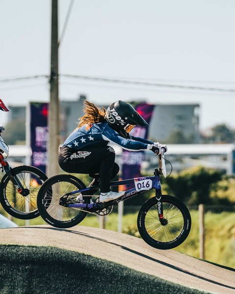 There’s not just a money component. There’s a serious commitment of time. She trains on average about 3 hours a day. She says she does strength and conditioning including “explosive workouts in the gym” as well as weightlifting for about an hour and a half a day, and spends another two hours on the track. She works on “track work and working on your skills and speed and gate speed, plyometric fast speed” and says some of her time is what she calls “messing around a lot on the track,” trying new things and getting out of her comfort zone with “manuals, and jumping.” And she says she does a lot of sprints on the bike. Alden has a California-based coach, Brandon Devo, and also is coached by her older brother, who used to BMX race.