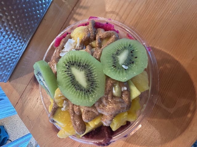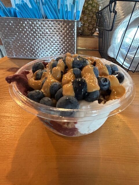 The bowl was beautiful—fresh fruit for sweetness and fiber, a silky açaí base, crunchy granola, and a drizzle of local honey to top it off. It was light, refreshing, perfectly balanced, and, surprisingly, it kept me full until long after we landed in Portland. My açaí journey had begun.