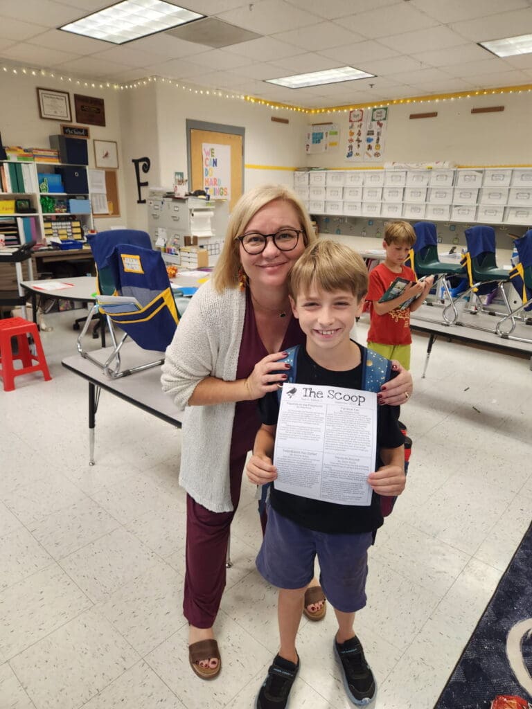 In their most recent edition, Year 4, Edition 2, September 2025, headlines included Popsicles on the Playground, Fall Book Fair, an interview with Mrs. Moses, a special ed teacher, a recipe for Sour Patch Grapes, an article about the Atlanta Braves, and a fiction piece called The Adventures of David Jackson Part 2: A Cursed Kingdom by Noah Tillery. They sell the six-page newspaper for $.25 each to fellow students and staff.