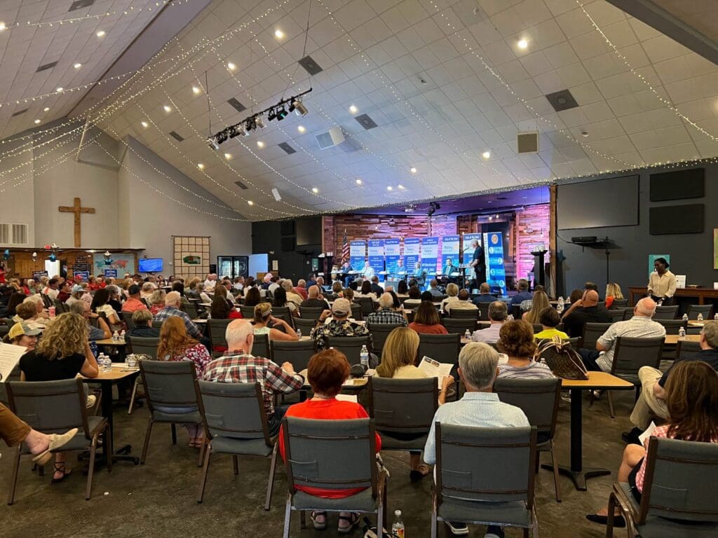 The sanctuary at Peachtree City Christian Church was packed on September 23 as neighbors filed in, Rotarians ushered folks to their seats, and six candidates took their places on stage. The occasion was the Rotary Club’s “Meet the Candidates” forum, the first time this election season that all of Peachtree City’s contenders for mayor and council shared the same spotlight.
