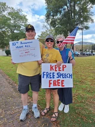Stephanie Sisk, who attended with Roger and Beckie Sloan, said the rally underscored the importance of civic engagement. “This rally was important to us because we all need to speak out and defend our democracy,” Sisk said.