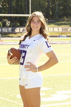 Bella is a multi-sport athlete that has played Flag Football for several years, but for her senior year she changed positions over to the offensive side of the ball and now she leads the team in receptions, yards, and touchdowns. She is a solid student academically that is excelling in a schedule filled with multiple AP classes. She’s a great leader in the community and even volunteers as an assistant athletic trainer when she’s not playing flag football. Bella would make a great selection for the Athlete of the week.