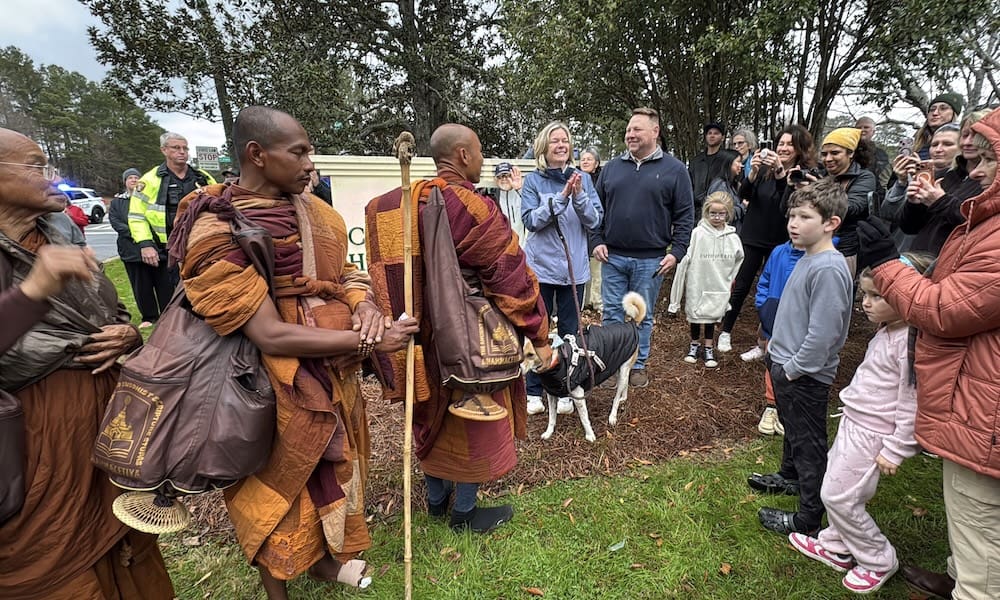 Earlier Monday morning, the monks briefly stopped at Peachtree City Town Hall, which sits directly along their route. There, they met with State Rep. Josh Bonner and Peachtree City Mayor Kim Learnard before continuing toward Fayetteville.