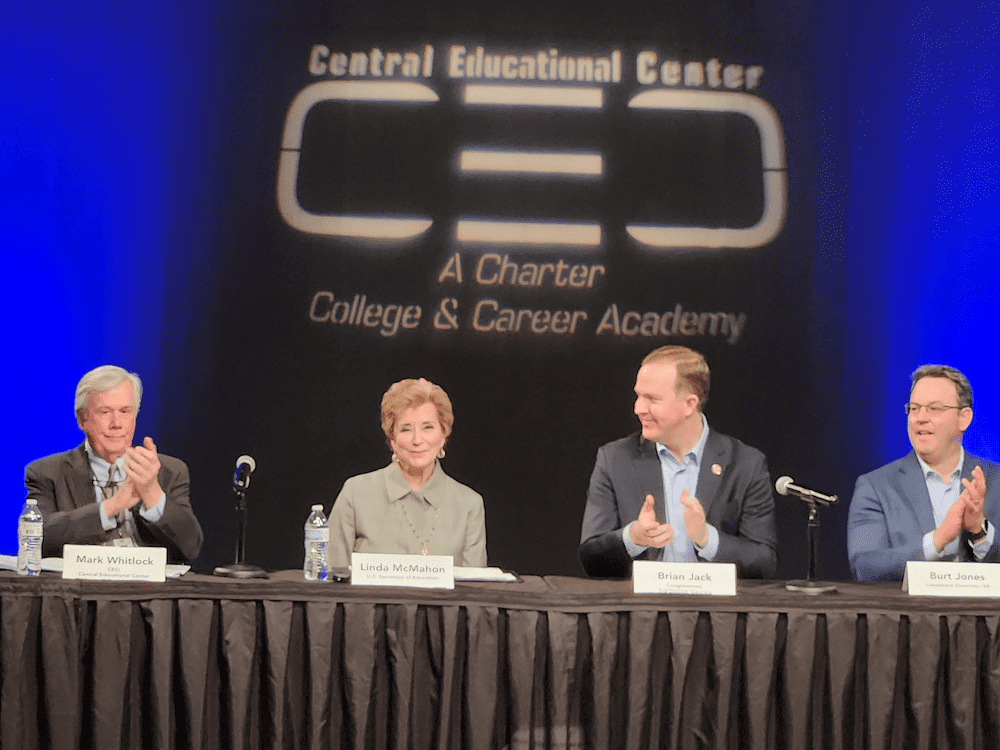 U.S. Secretary of Education Linda McMahon visited Coweta County on Friday to tour the Central Educational Center (CEC) in Newnan, meeting with students, educators, business leaders, and elected officials to discuss workforce development and career-focused education.