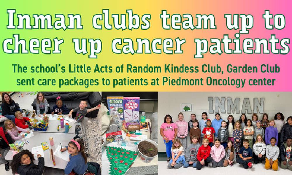 Inman Elementary is proving that even the smallest hands can make a big difference. The school’s LARK (Little Acts of Random Kindess) Club and Garden Club partnered to send care packages and plants to patients receiving treatment at the Piedmont Oncology center.