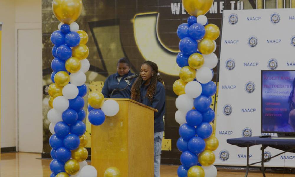The pep rally featured a youth-led program, with Gabrielle Ferguson and Gabrielle Wooden serving as youth emcees and guiding the audience through what organizers described as a “youth takeover” of the MLK birthday celebration. Performances by youth speakers, a youth chorus, and youth dance groups created a lively and engaging program.