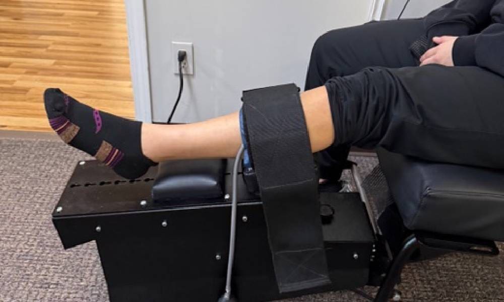 “It’s like decompression for your knee,” Marchese said. “You sit on it, we strap your leg down, and it gently stretches the knee out.”