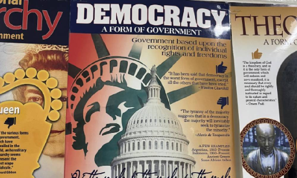 I also taught social studies for 3 days at Bennetts Mill M.S. In the social studies hall there is a sign (pictured below) depicting America as a democracy, but America is not a democracy, it is a representative (or democratic) republic. I asked the department chair to fix the misrepresentation, but I doubt it has been fixed.