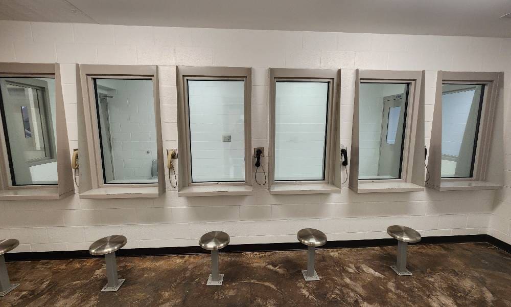 Inmates are permitted two opportunities each week to communicate with family members through video calls or in-person visits. Visits occur through plexiglass barriers separating inmates from their families. Physical contact is not allowed.