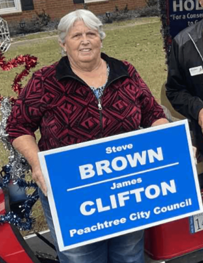 Clifton has not operated in a vacuum. Council Member Suzanne Brown publicly supported Clifton’s 2025 Peachtree City council campaign.