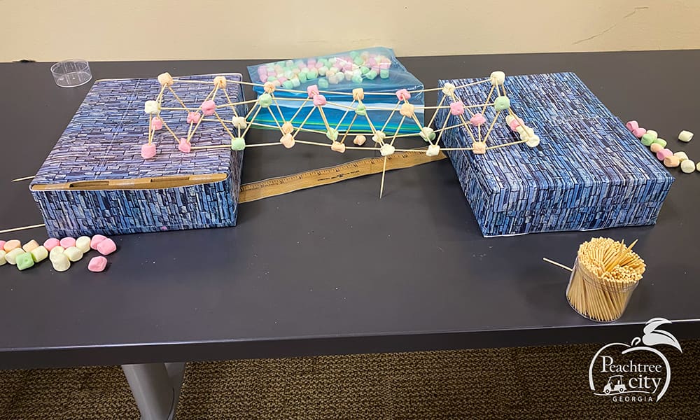 During one exercise, teams were challenged to design a multi-use path—balancing safety, environmental impact, and real-world constraints. In another, they built bridges out of unconventional materials, testing the same structural concepts engineers use across the city.