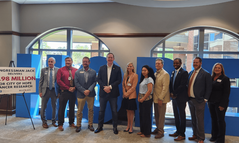 Congressman Brian Jack announced $1.98 million in federal funding for City of Hope Cancer Center in Newnan to expand an artificial intelligence platform designed to match cancer patients with clinical trials on Thursday.