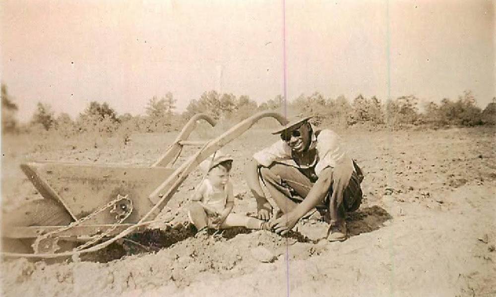 Your compiler’s father and a tenant named Neal McGee planning cotton on the farm in Brooks in the early 1940s. Your compiler still has the cultivator/planter.