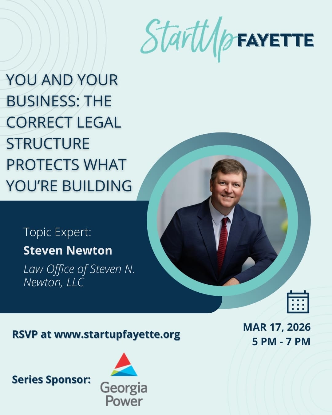 StartUp Fayette: You and Your Business: The Correct Legal Structure Protects What You’re Building Presented by Steven Newton Mar 17 StartUp Fayette: You and Your Business: The Correct Legal Structure Protects What You’re Building Presented by Steven Newton 5:00 pm - 7:00 pm $15
