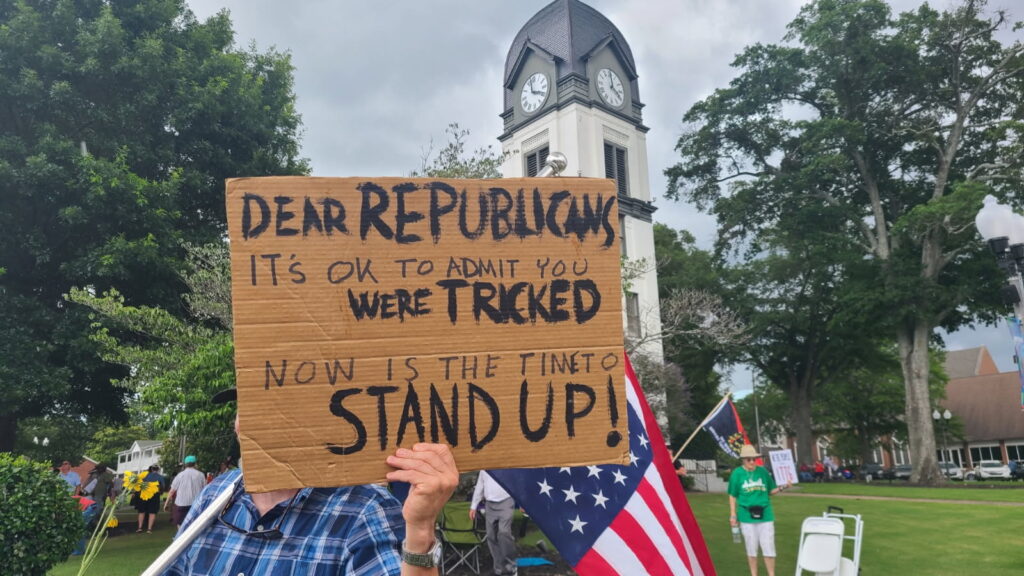 The square in Fayetteville, Georgia, was filled with over 1000 peaceful protestors at the No Kings Rally on Saturday, June 14, 2025. According to one attendee, organizers said there were