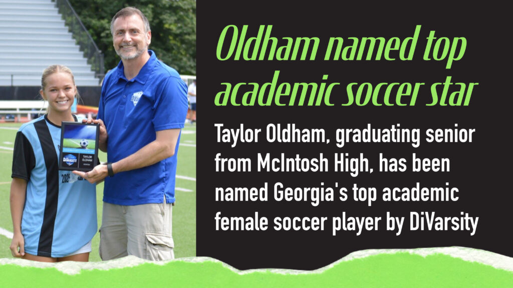 Taylor Oldham, a graduating senior from McIntosh High, has been named Georgia’s top academic female soccer player in Class 5A by DiVarsity, recognizing her extraordinary accomplishments on the field and